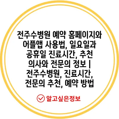 전주수병원 예약 홈페이지와 어플앱 사용법, 일요일과 공휴일 진료시간, 추천 의사와 전연락 정보 | 전주수병원, 진료시간, 전연락 추천, 예약 방법 에 대해 자주 묻는 질문 TOP 5