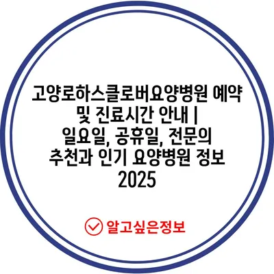 고양로하스클로버요양병원 예약 및 진료시간 공지 | 일요일, 공휴일, 전연락 추천과 인기 요양병원 정보 2025 에 대해 자주 묻는 질문 TOP 5