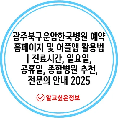 광주북구운암한국병원 예약 홈페이지 및 어플앱 활용법 | 진료시간, 일요일, 공휴일, 종합병원 추천, 전연락 공지 2025에 대해 알아보겠습니다.