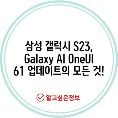 삼성 갤럭시 S23 Galaxy AI OneUI 6.1 업데이트에 대해 자세히 설명하며, 새로운 기능과 개선 사항을 살펴봅니다.