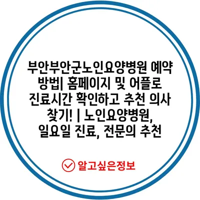 ✅ 부안부안군노인요양병원의 진료시간과 예약 방법을 알아보세요!
