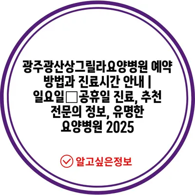 광주광산상그릴라요양병원 예약 방법과 진료시간 공지 | 일요일・공휴일 진료, 추천 전연락 정보, 유명한 요양병원 2025 에 대해 자주 묻는 질문 TOP 5