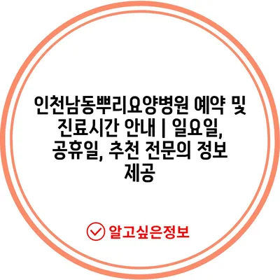 ✅ 인천남동뿌리요양병원의 진료시간과 예약 방법을 알아보세요!