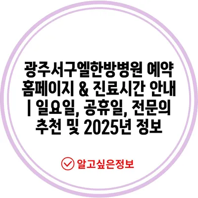 광주서구엘한방병원 예약 홈페이지 & 진료시간 공지 | 일요일, 공휴일, 전연락 추천 및 2025년 정보