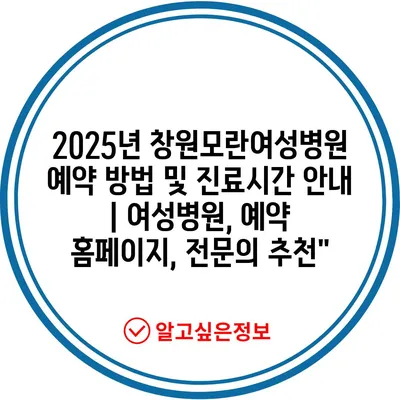 2025년 창원모란여성병원 예약 방법 및 진료시간 공지에 대해 알아보겠습니다.