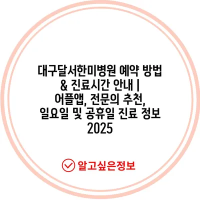 대구달서한미병원 예약 방법 & 진료시간 공지 | 어플앱, 전연락 추천, 일요일 및 공휴일 진료 정보 2025에 대해 알아보겠습니다.