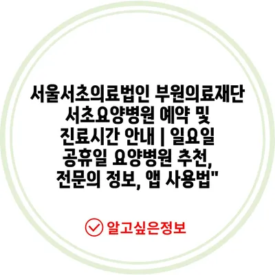 서울서초의료법인 부원의료재단 서초요양병원 예약 및 진료시간 안내 | 일요일 공휴일 요양병원 추천, 전문의 정보, 앱 사용법”