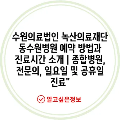 ✅ 동수원병원 예약 방법과 진료 시간, 자세히 알아보세요!