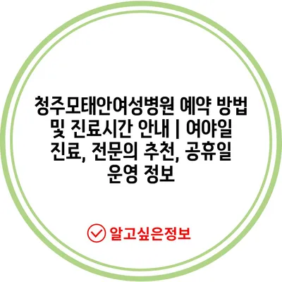 청주모태안여성병원 예약 방법 및 진료시간 공지 | 여야일 진료, 전연락 추천, 공휴일 운영 정보 에 대해 자주 묻는 질문 TOP 5