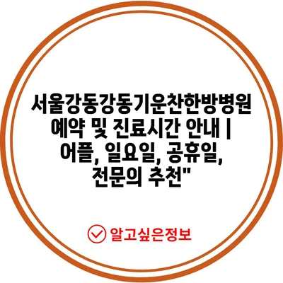 ✅ 서울강동강동기운찬한방병원 예약 정보를 지금 바로 확인해보세요.