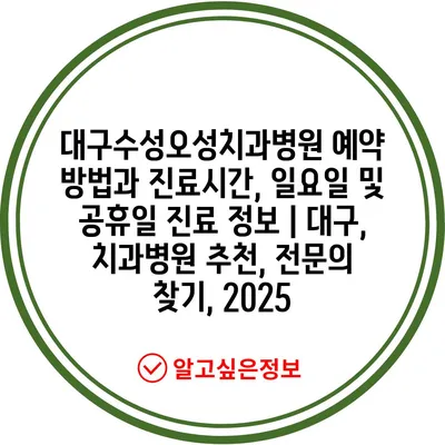 ✅ 대구수성오성치과병원의 진료시간과 예약 방법을 지금 확인해보세요.