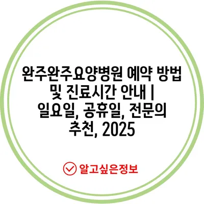완주완주요양병원 예약 방법 및 진료시간 공지 | 일요일, 공휴일, 전연락 추천, 2025