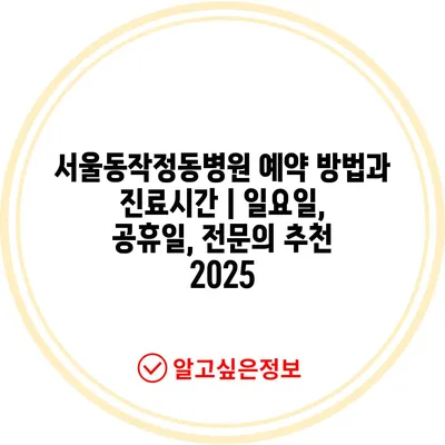 서울동작정동병원 예약 방법과 진료시간 | 일요일, 공휴일, 전연락 추천 2025에 대해 자주 묻는 질문 TOP 5