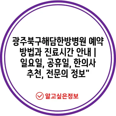 광주북구해담한방병원 예약 방법과 진료시간 공지 | 일요일, 공휴일, 한의사 추천, 전연락 정보에 대해 자주 묻는 질문 TOP 5