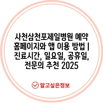 사천삼천포제일병원 예약 홈페이지와 앱 이용 방법, 진료시간, 일요일, 공휴일, 전연락 추천 2025에 대해 알아보겠습니다.