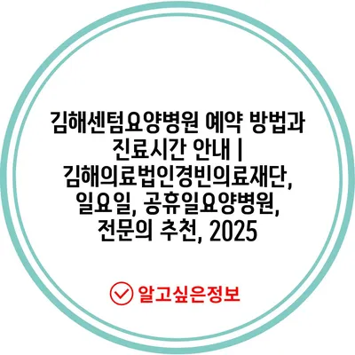 김해센텀요양병원 예약 방법과 진료시간 공지 | 김해의료법인경빈의료재단, 일요일, 공휴일요양병원, 전연락 추천, 2025 에 대해 자주 묻는 질문 TOP 5