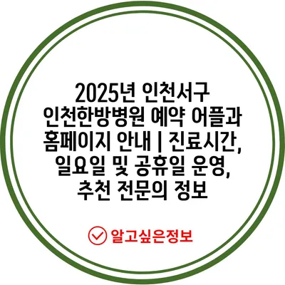 2025년 인천서구 인천한방병원 예약 어플과 홈페이지 공지 | 진료시간, 일요일 및 공휴일 운영, 추천 전연락 정보 에 대해 자주 묻는 질문 TOP 5