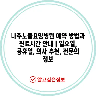 나주노블요양병원 예약 방법과 진료시간 공지 | 일요일, 공휴일, 의사 추천, 전연락 정보 에 대해 자주 묻는 질문 TOP 5