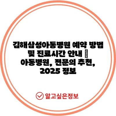 ✅ 김해삼성아동병원의 진료시간과 예약 방법을 상세히 알아보세요.