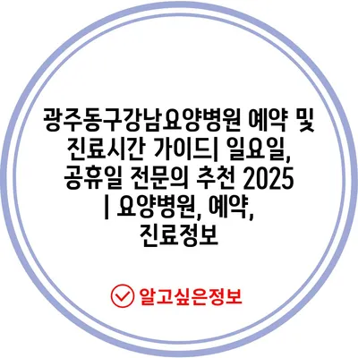 광주동구강남요양병원 예약 및 진료시간 설명서| 일요일, 공휴일 전연락 추천 2025 | 요양병원, 예약, 진료정보에 대한 유용한 내용을 알려알려드리겠습니다.