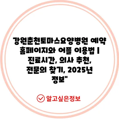 ✅ 강원춘천토마스요양병원의 예약 방법과 진료 정보를 쉽게 알아보세요.