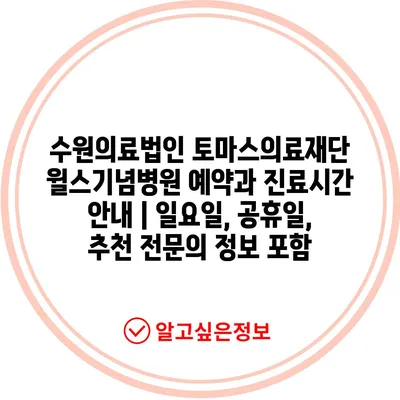 수원의료법인 토마스의료재단 윌스기념병원 예약과 진료시간 안내 | 일요일, 공휴일, 추천 전문의 정보 포함