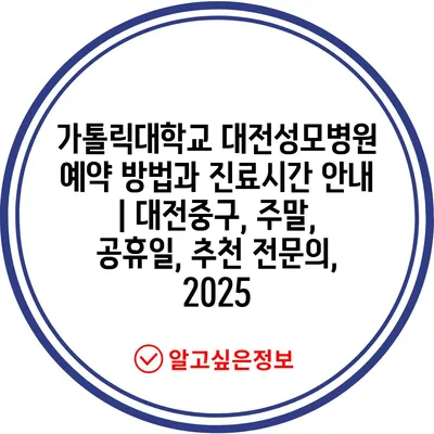 가톨릭대학교 대전성모병원 예약 방법과 진료시간 공지 | 대전중구, 주말, 공휴일, 추천 전연락, 2025