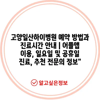 고양일산하이병원 예약 방법과 진료시간 공지 | 어플앱 이용, 일요일 및 공휴일 진료, 추천 전연락 정보에 대해 자주 묻는 질문 TOP 5