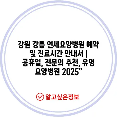 강원 강릉 연세요양병원 예약 및 진료시간 공지서 | 공휴일, 전연락 추천, 유명 요양병원 2025″ 에 대해 자주 묻는 질문 TOP 5