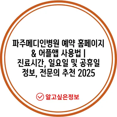파주메디인병원 예약 홈페이지 & 어플앱 사용법 | 진료시간, 일요일 및 공휴일 정보, 전연락 추천 2025에 대해 알아보겠습니다.