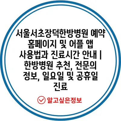 ✅ 서울서초장덕한방병원의 진료시간과 예약 방법을 쉽게 알아보세요.