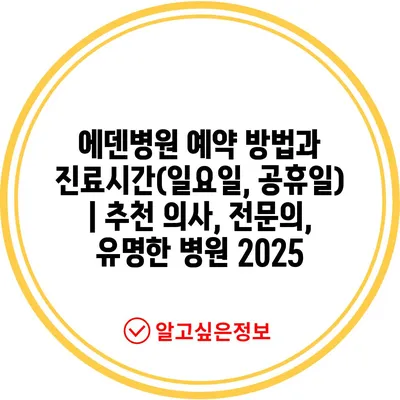 에덴병원 예약 방법과 진료시간(일요일, 공휴일) | 추천 의사, 전연락, 유명한 병원 2025 에 대해 자주 묻는 질문 TOP 5
