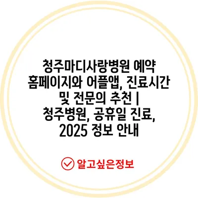 ✅ 2025년 청주마디사랑병원 진료시간과 예약 방법을 확인해 보세요.