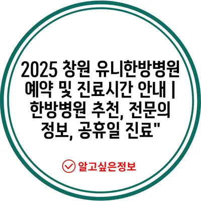 ✅ 창원 유니한방병원의 예약 팁과 진료시간을 놓치지 마세요!