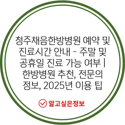 청주채음한방병원 예약 및 진료시간 공지 – 주말 및 공휴일 진료 가능 여부 | 한방병원 추천, 전연락 정보, 2025년 이용 팁 에 대해 자주 묻는 질문 TOP 5