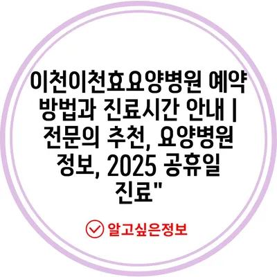 이천이천효요양병원 예약 방법과 진료시간 공지 | 전연락 추천, 요양병원 정보, 2025 공휴일 진료” 에 대해 자주 묻는 질문 TOP 5