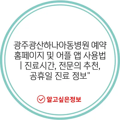 ✅ 광주광산하나아동병원의 진료시간과 예약 정보, 지금 바로 확인해 보세요!