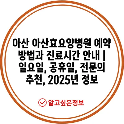 아산 아산효요양병원 예약 방법과 진료시간 공지 | 일요일, 공휴일, 전연락 추천, 2025년 정보 에 대해 자주 묻는 질문 TOP 5