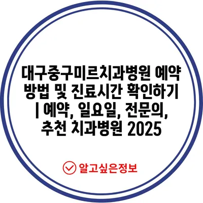 대구중구미르치과병원 예약 방법 및 진료시간 확인하기 | 예약, 일요일, 전문의, 추천 치과병원 2025