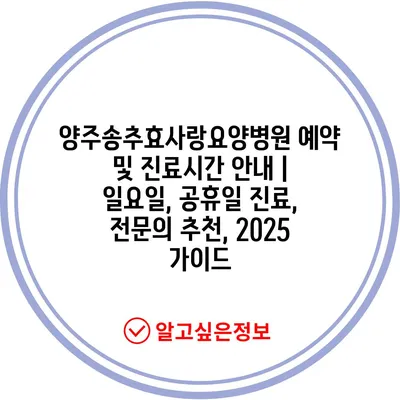 양주송추효사랑요양병원 예약 및 진료시간 공지 | 일요일, 공휴일 진료, 전연락 추천, 2025 설명서 에 대해 자주 묻는 질문 TOP 5