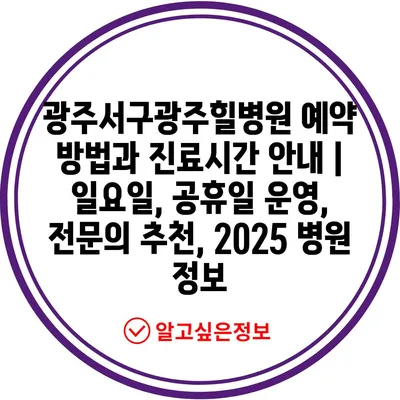 광주서구광주힐병원 예약 방법과 진료시간 공지 | 일요일, 공휴일 운영, 전연락 추천, 2025 병원 정보 에 대해 자주 묻는 질문 TOP 5