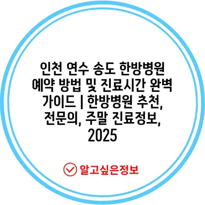 인천 연수 송도 한방병원 예약 방법 및 진료시간 완벽 설명서 | 한방병원 추천, 전연락, 주말 진료정보, 2025 에 대해 자주 묻는 질문 TOP 5