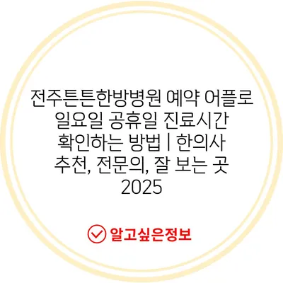 전주튼튼한방병원 예약 어플로 일요일 공휴일 진료시간 확인하는 방법 | 한의사 추천, 전연락, 잘 보는 곳 2025 에 대해 자주 묻는 질문 TOP 5