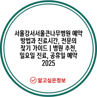 서울강서서울큰나무병원 예약 방법과 진료시간, 전연락 찾기 설명서 | 병원 추천, 일요일 진료, 공휴일 예약 2025 에 대해 자주 묻는 질문 TOP 5