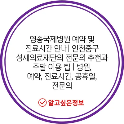 영종국제병원 예약 및 진료시간 공지| 인천중구 성세의료재단의 전연락 추천과 주말 이용 팁 | 병원, 예약, 진료시간, 공휴일, 전연락 에 대해 자주 묻는 질문 TOP 5