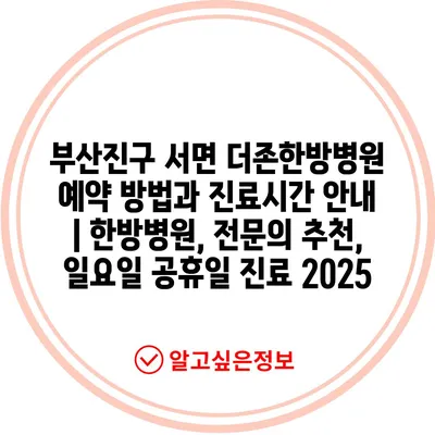 부산진구 서면 더존한방병원 예약 방법과 진료시간 공지 | 한방병원, 전연락 추천, 일요일 공휴일 진료 2025 에 대해 자주 묻는 질문 TOP 5
