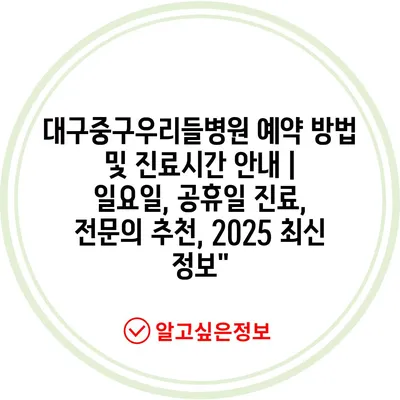 대구중구우리들병원 예약 방법 및 진료시간 공지 | 일요일, 공휴일 진료, 전연락 추천, 2025 최신 정보에 대해 자주 묻는 질문 TOP 5