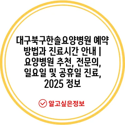 대구북구한솔요양병원 예약 방법과 진료시간 안내 | 요양병원 추천, 전문의, 일요일 및 공휴일 진료, 2025 정보
