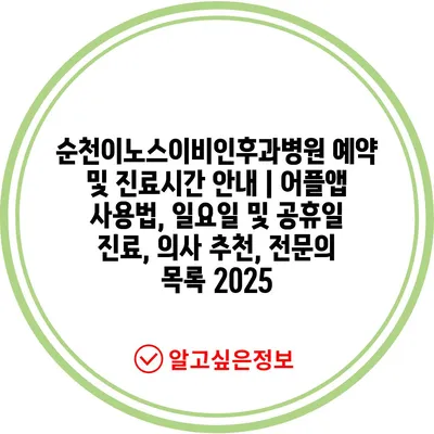 순천이노스이비인후과병원 예약 및 진료시간 공지 | 어플앱 사용법, 일요일 및 공휴일 진료, 의사 추천, 전연락 목록 2025에 대해 알려제공합니다.