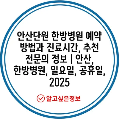 안산단원 한방병원 예약 방법과 진료시간, 추천 전연락 정보 | 안산, 한방병원, 일요일, 공휴일, 2025 에 대해 자주 묻는 질문 TOP 5
